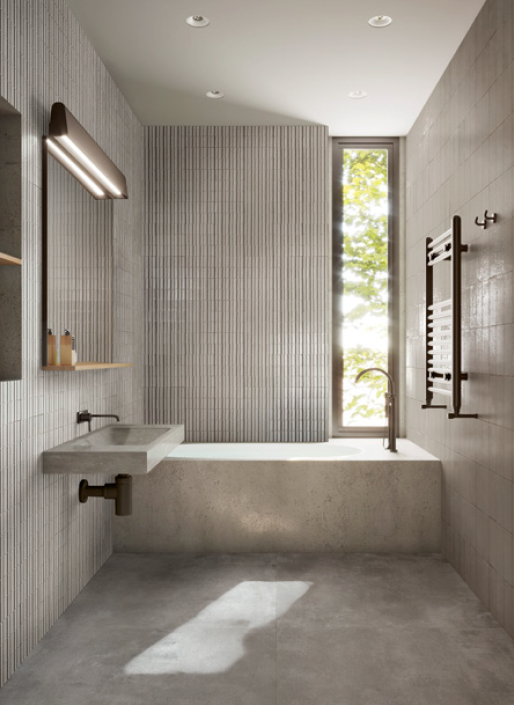Série Glacé: Dentro do mundo dos pequenos formatos apresentamos os novos porcelânicos 7,5×20 com um design vintage que alarga a família da cerâmica Storie juntamente com as prestigiadas séries Look, Melange e Glezze.
