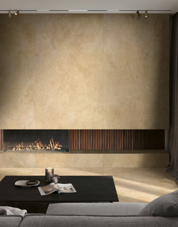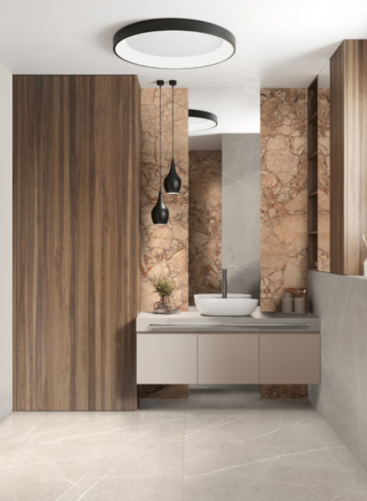 Serie Incanto: A série Incanto é alargada com 2 novos mármores em grandes formatos até 278×120 e pequenos. São os mármores Velvet Taupe e Beige Alicante. Destacamos também as novas decorações.