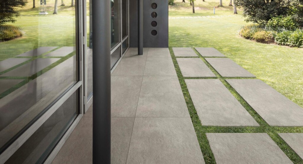 20 mm de grés porcelânico Ragno: ideal para pavimentos exteriores e de jardim, também para criar continuidade entre interiores e em terraços, alpendres, escadas, caminhos de acesso. Também disponível em colecções técnicas de grés de alto desempenho.