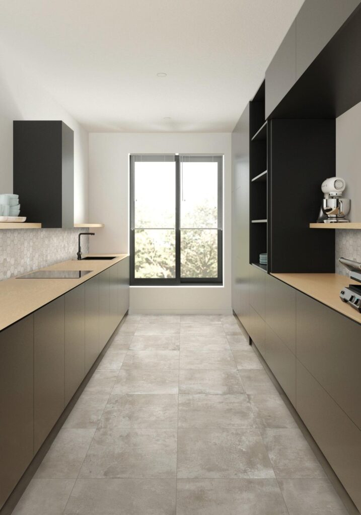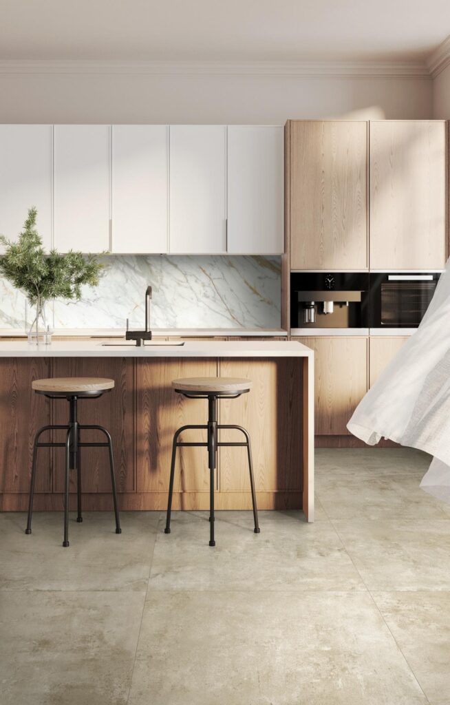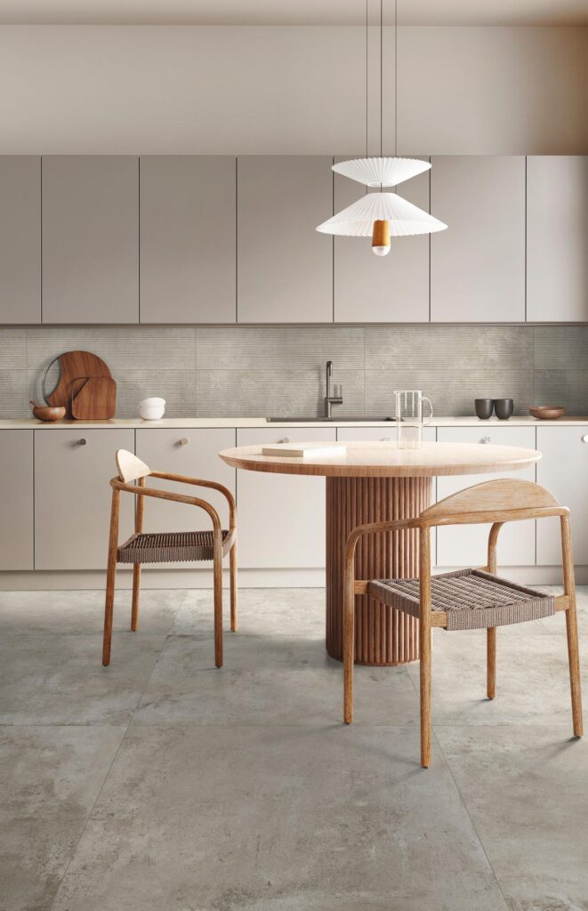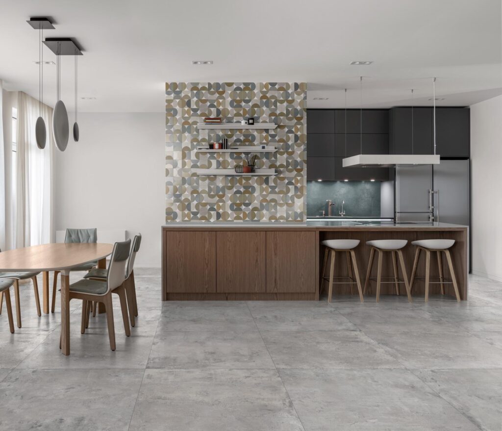 Seis cores neutras, tanto claras como escuras, são utilizadas com grande versatilidade em quatro tamanhos, 100×100, 60×120, 60×60 e 30×60 cm, para esquemas de design de look total muito modernos.