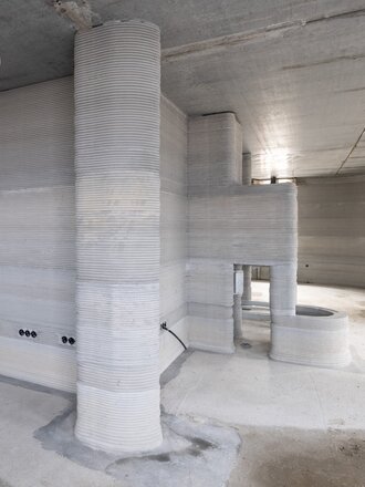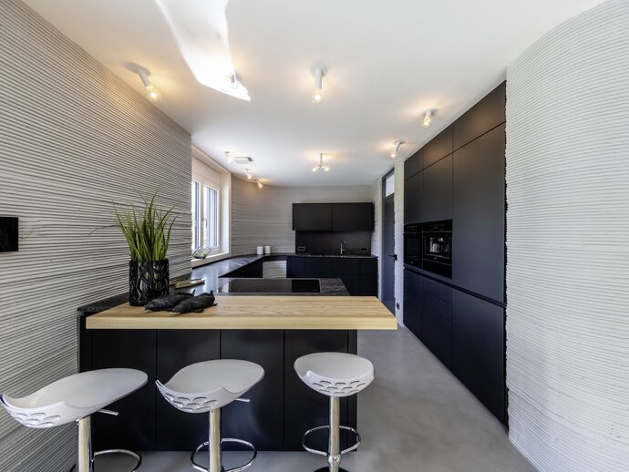 A primeira habitação unifamiliar oficialmente aprovada na Alemanha, construída com recurso ao processo de impressão em betão 3D, está agora localizada em Beckum, em Münster. A instalação de uma banheira Bette e de duas bases de duche Bette prova que este é um projeto modelo visionário, orientado para a qualidade e sustentável. Para os projectistas e arquitectos, a impressão 3D significa um elevado grau de liberdade de design na conceção dos edifícios. Se a tecnologia vingar, no futuro poderão realizar formas que só seriam viáveis na construção convencional, com grandes custos financeiros. O edifício residencial de dois andares em Beckum, com cerca de 160 metros quadrados de área habitável, também foi criado tridimensionalmente no computador antes de a impressora de betão 3D imprimir tudo com uma precisão centimétrica. E isto foi feito em apenas alguns dias. Como é que funciona? A cabeça de impressão cospe o betão como se fosse creme de um saco de esguicho. A uma velocidade de até um metro por segundo, move-se ao longo do seu percurso programado numa estrutura metálica permanentemente instalada. Camada a camada, as paredes de um edifício crescem para cima.