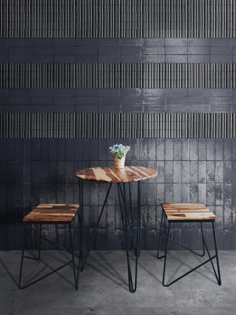 As propriedades técnicas do grés são combinadas com um impacto estético marcante e contemporâneo, com uma decoração tridimensional que confere profundidade e riqueza de cor aos esquemas de design de interiores. A estrutura Rayé 3D às riscas tem sulcos de largura e profundidade variáveis para criar um aspeto de “código de barras”, com uma alternância de esmaltes brilhantes e mate.