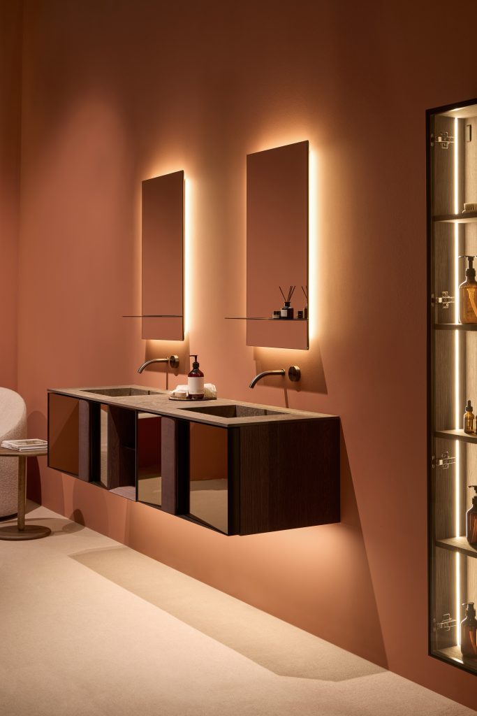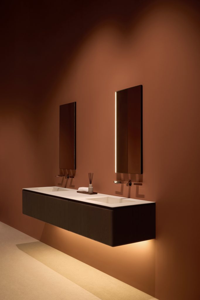 A evolução natural da reconhecida coleção Camira, Camira Wall é um sistema modular de painéis e mobiliário que permite criar paredes funcionais e elegantes, integrando lavatórios, arrumação e espelhos com continuidade visual.