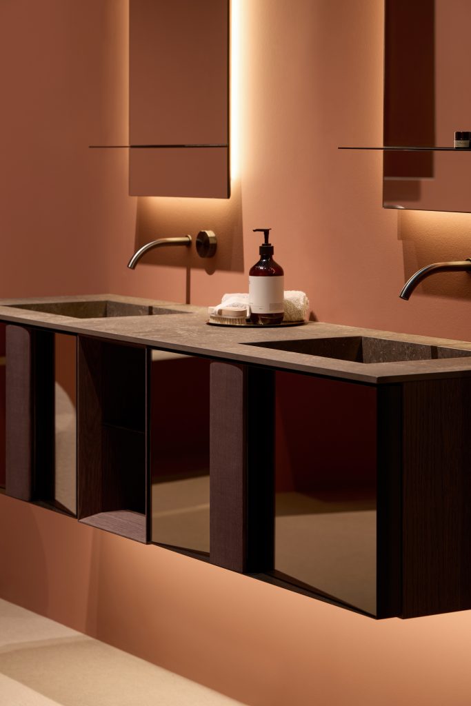 A nova coleção RIBON apresenta um design arquitetónico e escultural, marcado por duas superfícies inclinadas e um puxador frontal em forma de T que define a sua personalidade.
