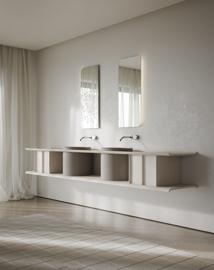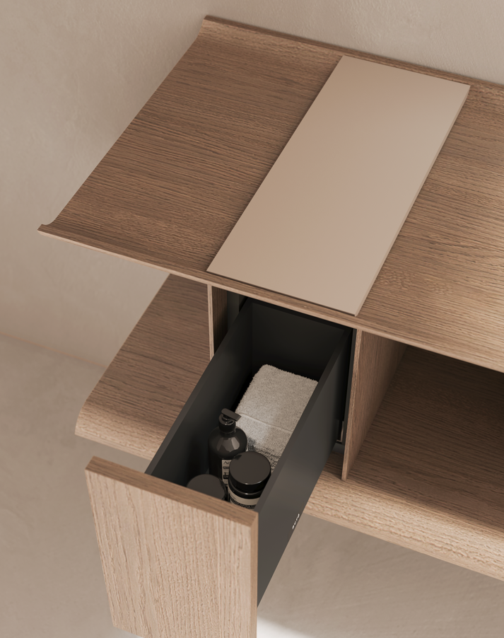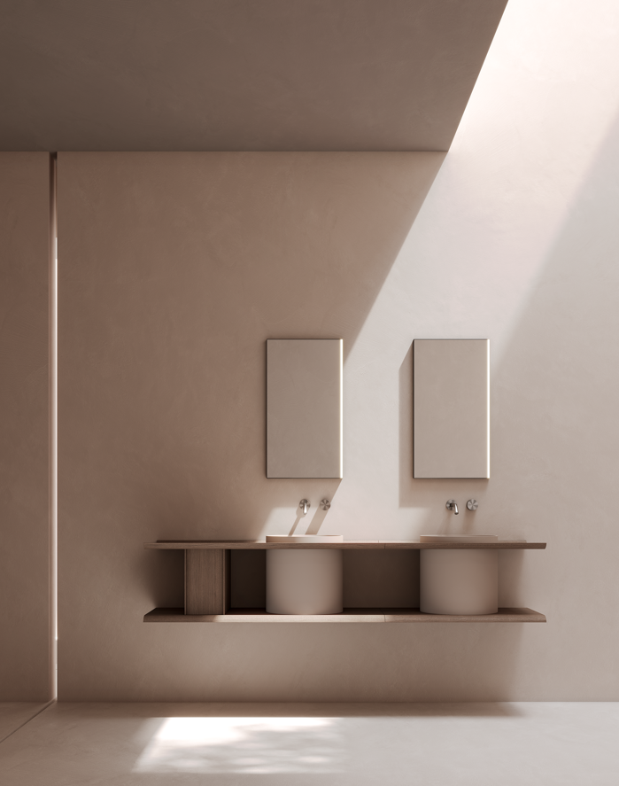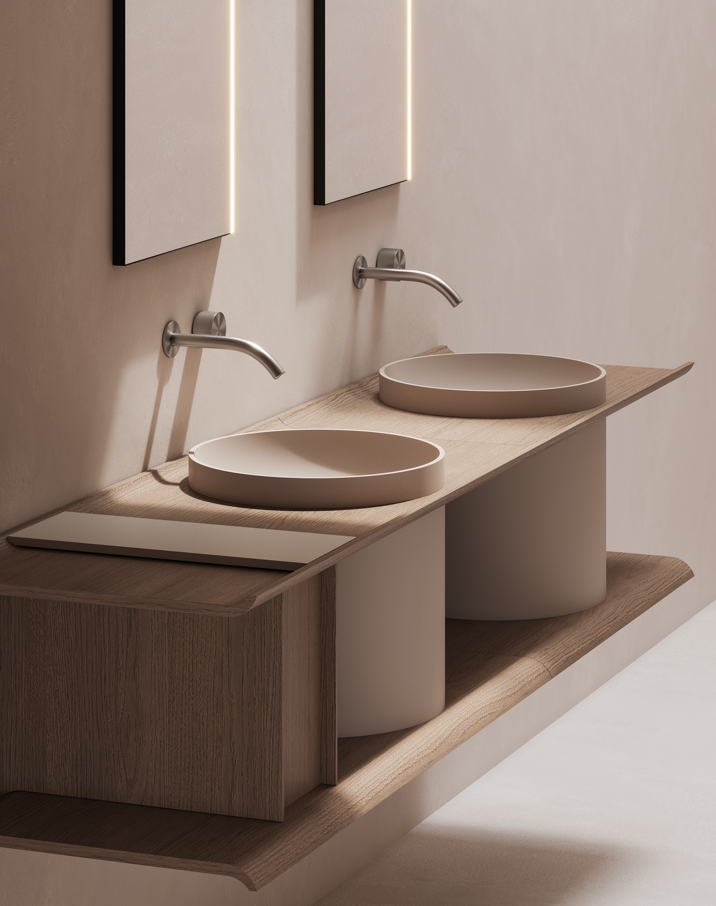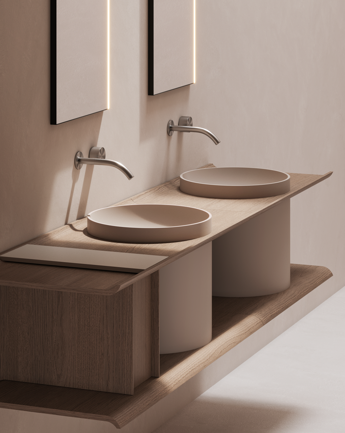 A Coleção TABU destaca-se pela sua linguagem arquitetónica depurada, onde predominam volumes bem definidos, frentes lisas e uma presença visual forte, mas equilibrada. É uma coleção pensada para integrar projetos residenciais premium, hotelaria e espaços de banho contemporâneos, onde o mobiliário assume um papel central no desenho do espaço.