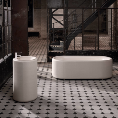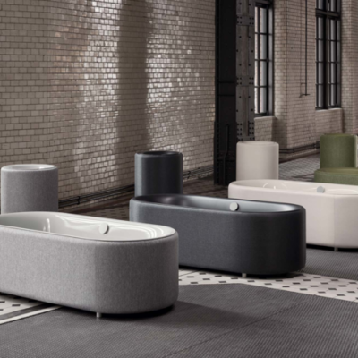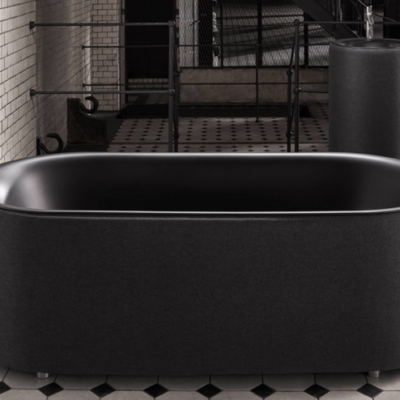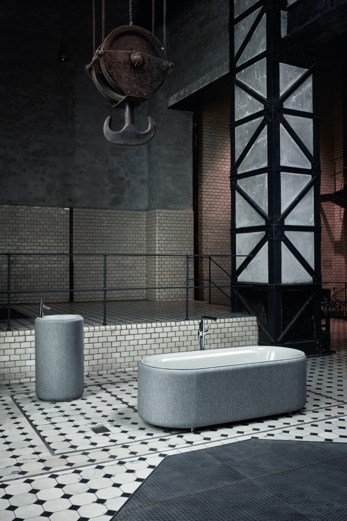 As primeiras banheiras revestidas a tecido trazem conforto doméstico para a casa de banho e conforto de casa de banho para a sua casa. O corpo destes banhos é fabricado convencionalmente a partir de aço-titanio vitrificado, mas o painel da banheira é feito de tecido impermeável e resistente ao clima. As vantagens únicas do aço esmaltado de titânio são elegantemente fundidas com o toque do tecido e um aspecto acolhedor. Um lavatório independente está disponível com o mesmo design.