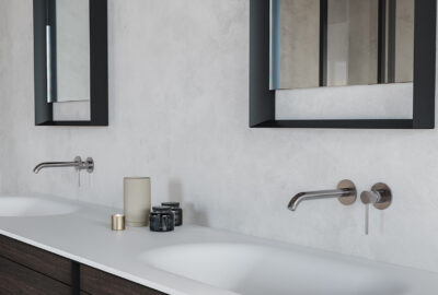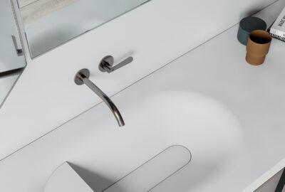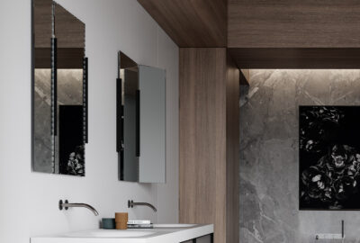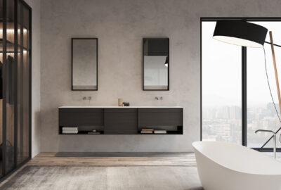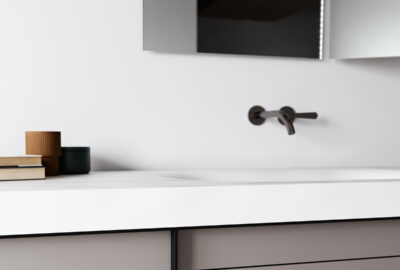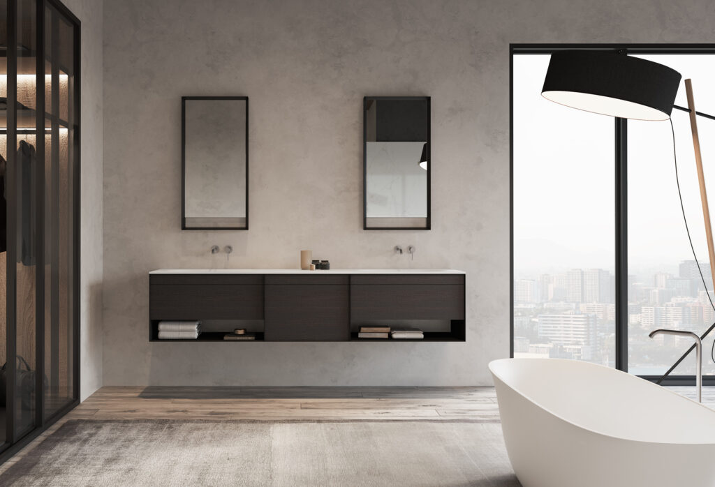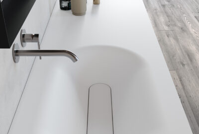 Com a possibilidade de personalização à medida e com diferentes acabamentos de madeira, lacas e lavatórios de design em Corian e Solid Surface.