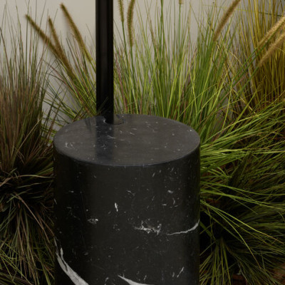 Elemento distintivo da coleção, a base em mármore é simultaneamente estrutural e estética: