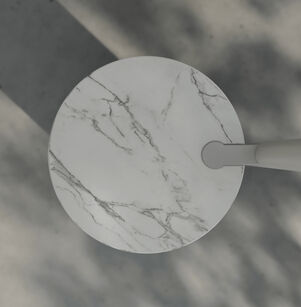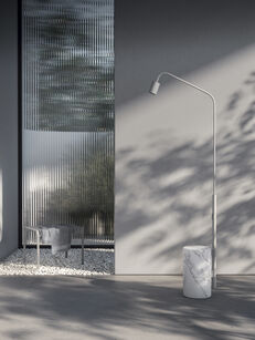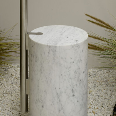 Desenhada por Davide Vercelli, esta peça combina a pureza do aço com a força expressiva do mármore, criando uma solução escultural pensada para projetos exigentes.