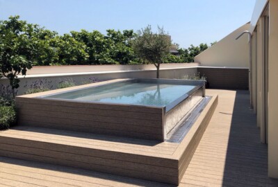 O aço inoxidável que usamos na nossa fábrica de piscinas Inbeca é um material elegante com um aspecto atraente que, quando moldado e manipulado com sistemas de alta tecnologia, nos permite obter um acabamento perfeito, respeitando as propriedades do aço, o seu brilho e os seus reflexos. Combinado com um reforço de alta resistência e estabilidade a deformações e expansões, criamos uma piscina perfeitamente estanque e firme. Temos uma vasta gama de modelos de piscinas em aço inoxidável para as diferentes aplicações que são hoje em dia essenciais em centros de bem-estar, spas, hotéis, ginásios, etc. ou casas unifamiliares onde é necessário um elevado nível de design. Existe também a possibilidade de fabricar piscinas em mosaico por medida e spas portáteis.