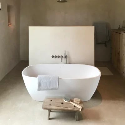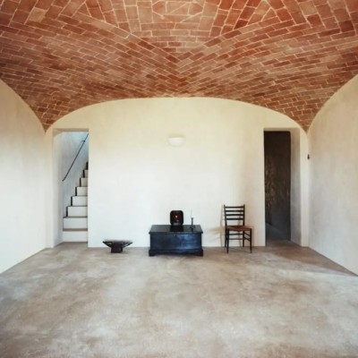 Revestimento de grão fino à base de argila e resina epoxídica, denominado TerraFloor Smooth e produzido por Matteo Brioni.