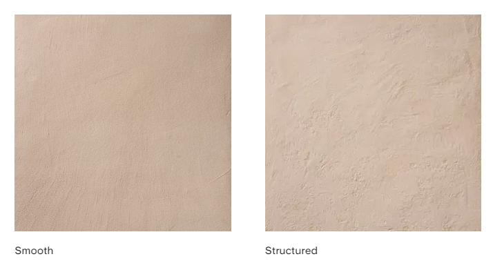 O TerraFloor está disponível em 2 versões de textura diferentes: Liso e Estruturado. Também estão disponíveis acabamentos personalizados para cada versão deste produto de argila.