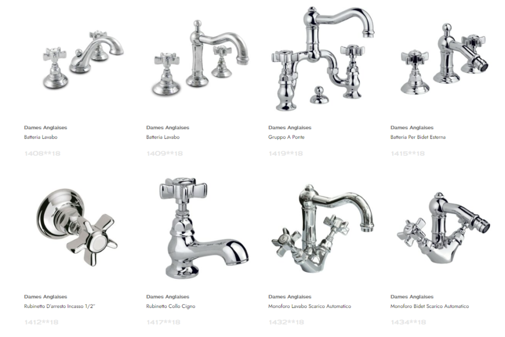 A coleção Dames Anglaises representa a interpretação de Nicolazzi do estilo neoclássico combinado com as torneiras. Produtos embelezados com os mais finos detalhes e curvaturas em latão enriquecem a casa de banho com singularidade e elegância. Um produto altamente trabalhado para clientes que procuram um verdadeiro estilo clássico para a sua casa de banho.