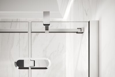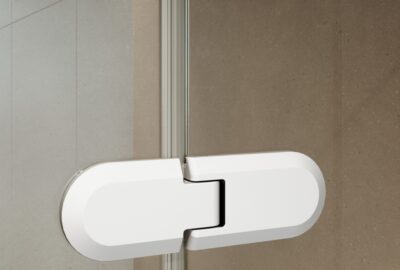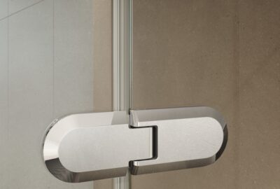 Resguardo de banho a medida com folha fixa e dobrável com possibilidade de abertura exterior ou interior, dependendo do modelo.