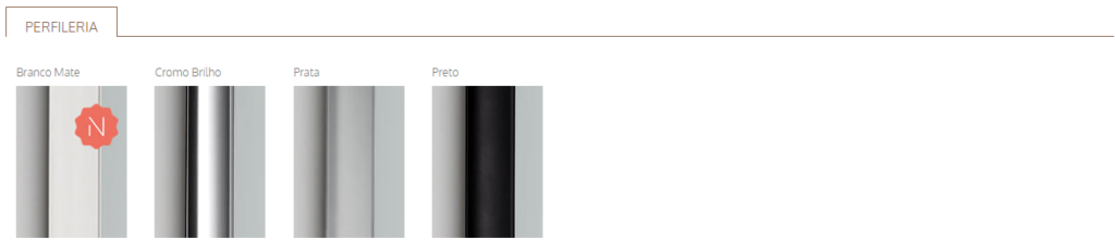 - Perfil base com acabamento Cromo Brilho, Preto ou Branco Mate.