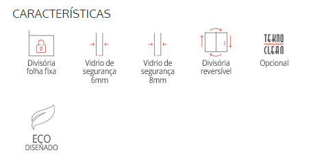 - Teknoclean opcional na divisória por medida e standard nas divisórias referenciadas.