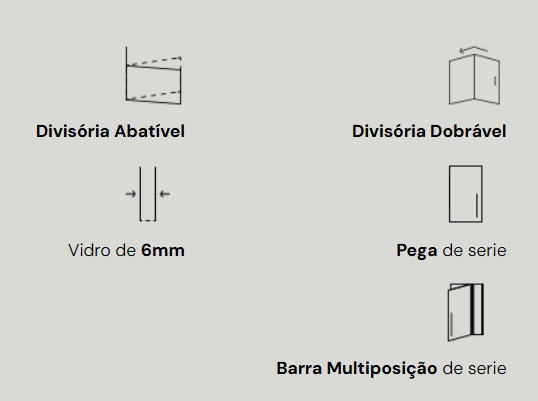 - Trata-se de um modelo com perfis reduzidos, pois integra uma barra articulada que otimiza a utilização do alumínio, proporcionando uma solução elegante e prática para quem valoriza a simplicidade sem sacrificar a estética.