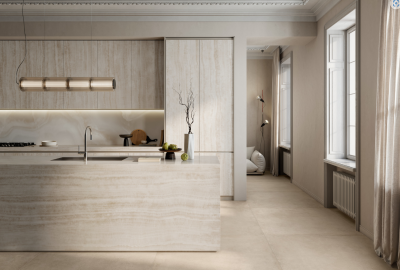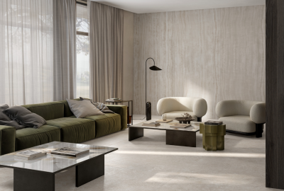 Disponível nos acabamentos Natural e Brilhante, a coleção apresenta-se em grandes formatos de 120×278 cm (6 mm) e em pavimentos de 120×120 e 60×120 cm, oferecendo soluções versáteis tanto para projetos residenciais como comerciais.