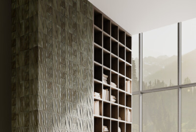 RAGNO – GLEEZE – Superfícies côncavas e convexas brilhantes combinadas com estruturas tridimensionais alternam-se nas paredes, animando-as. Uma paleta de cinco cores, Branco, Bege, Turquesa, Jade e Cinzento, disponível em três tamanhos diferentes 10×10, 5×15 e 7,5×20 cm, modular e com bordos rectos, para novas soluções de assentamento.