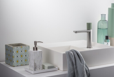 A Ritmonio sorprende com o lançamento – durante o Salone del Mobile em 2016 – da série de torneiras HAPTIC com o comando em concreto. Esta tecnica envolve o uso de resinas cimentícias na indústria de torneiras de design, a Ritmonio consagrou definitivamente seu papel no mundo de arquitetura e design de interiores.