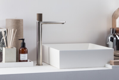 A Ritmonio é a única empresa do setor que pensou e propôs o uso do concreto aplicado ao controle das torneiras: um sinal distintivo da Ritmonio e da série, que se tornou um verdadeiro ícone, muito apreciado por arquitetos, designers e usuários finais em todo o mundo.