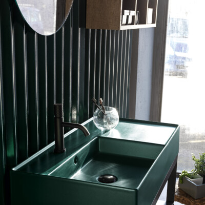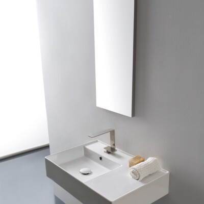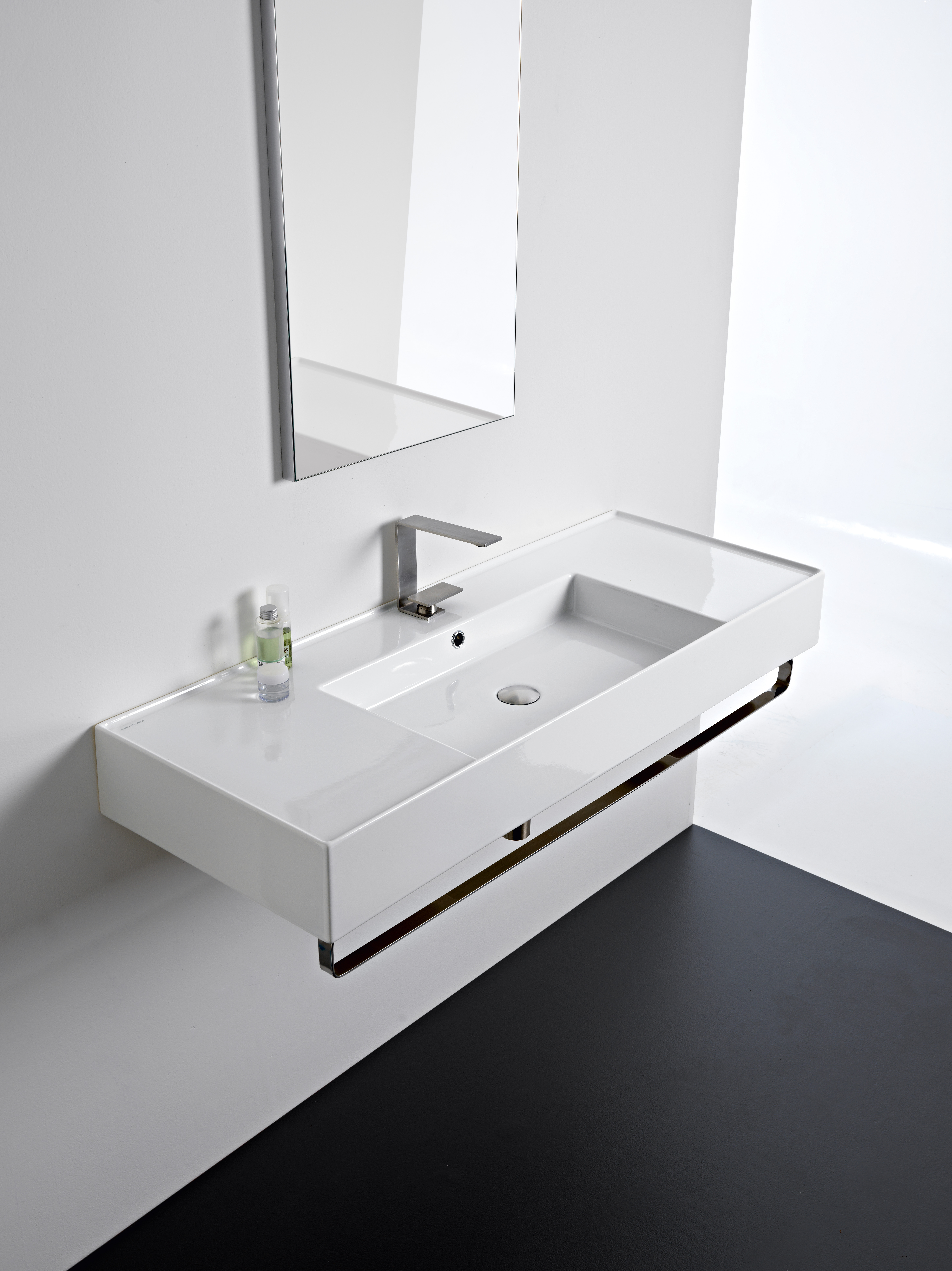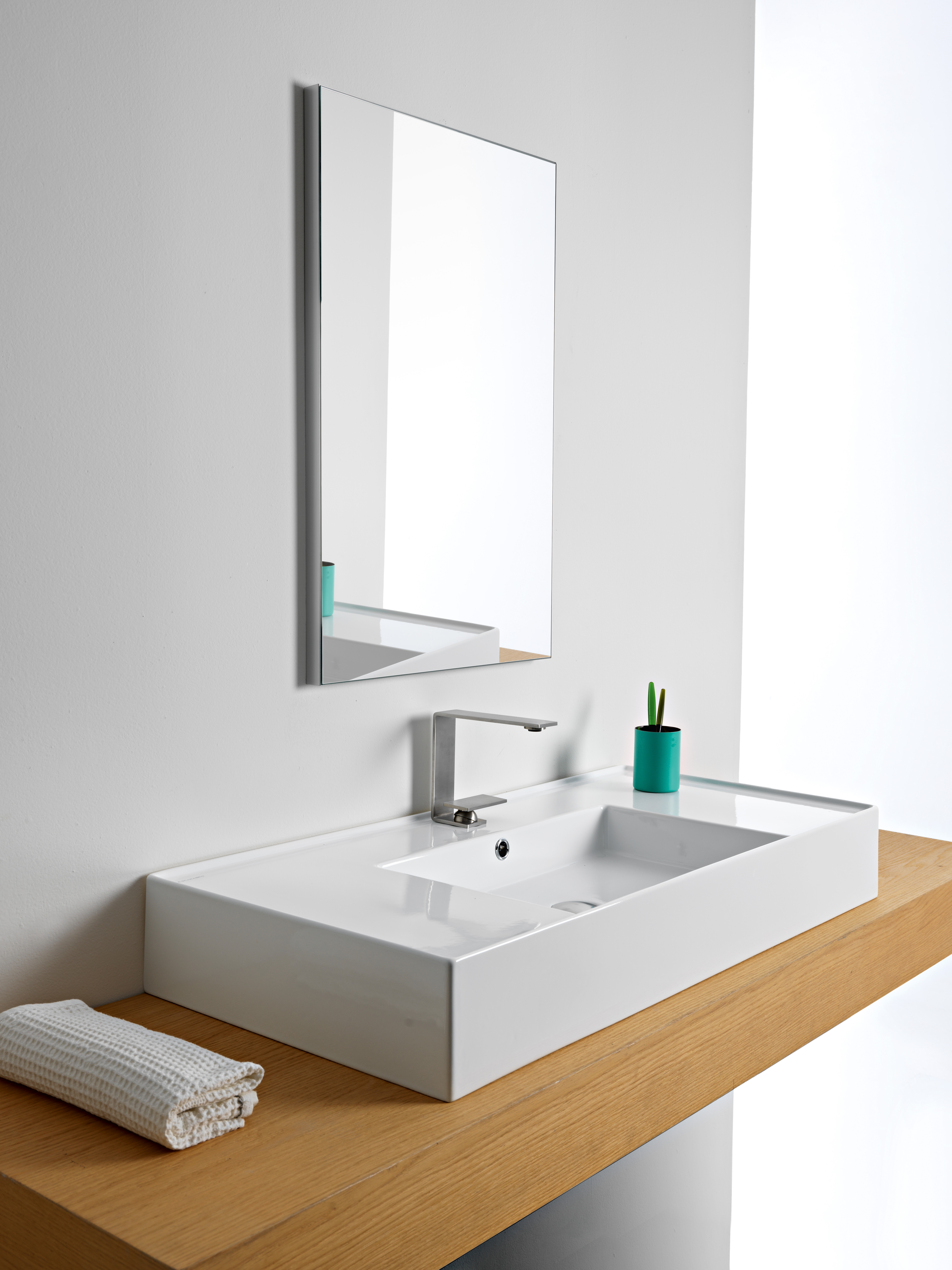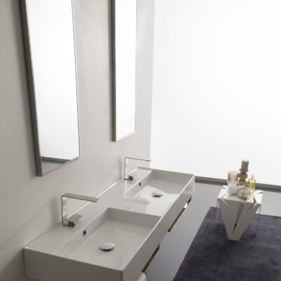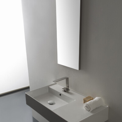 TEOREMA 2.0, o lavatório com um núcleo estreito e dimensões generosas. Um contraste invulgar e agradável entre a largura da bacia e a leveza dos seus bordos, que medem apenas alguns milímetros. Um design elegante e essencial que combina beleza e praticidade. Adequado para qualquer tipo de casa, engloba aquelas características funcionais ditadas pelo seu tamanho que o tornam um objecto de máxima usabilidade mesmo em casas com apenas uma casa de banho.