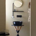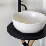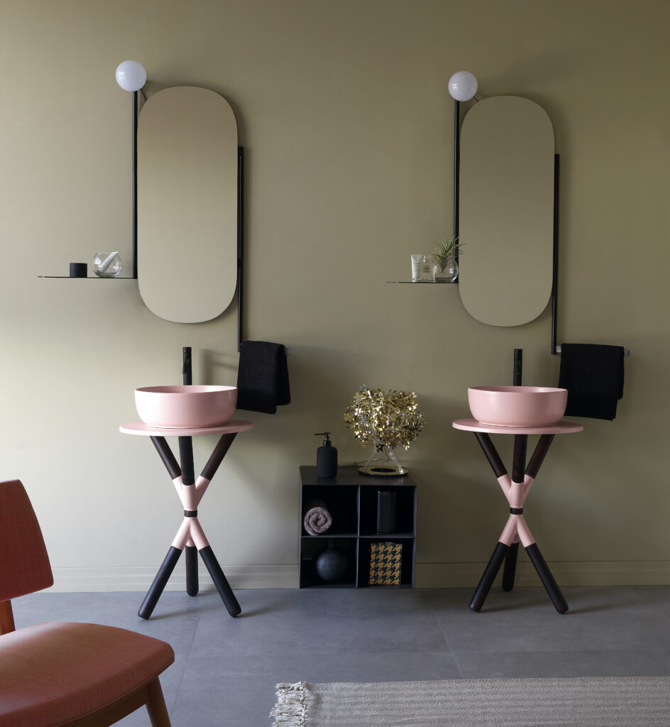 CROSS também inclui uma pequena mesa que se adapta perfeitamente à consola, tornando a casa de banho funcional e acolhedora ao mesmo tempo.