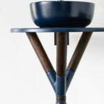 A base de madeira, com elementos de cruzamento unidos por inserções de cerâmica, suporta um tampo redondo de cerâmica que pode receber 14 tipos de lavatórios das colecções Scarabeo (Balde, Glam, Mizu, Thin Line, Forma e lavabos de mobiliário).